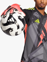 Get to the ball every time in these adidas Predator League goalkeeper gloves. Offering cushioned, grippy URG 3.0 latex in the palm and a knit backhand that flexes with your movements, they will ensure you're ready for anything during training sessions and matches. A half-wrap wrist strap helps you find a comfortable fit with the stability you need for confident keeping.