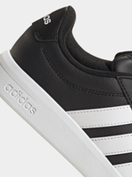 It's time to build — or fill in the gaps — in your retro sneaker collection. Let's start with these Grand Court shoes. The designers have revisited every element, adding a sturdy cupsole that offers grip in the wettest weather. Of course, these shoes stay true to their adidas roots too. The smooth, synthetic leather upper lets everyone know you're Team 3-Stripes.