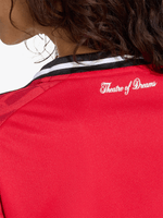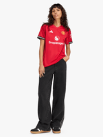 Few sporting stages can match the drama Manchester United's iconic home ground has generated over the years. So this adidas jersey pays tribute to the stadium in which it will be starring in 25/26 with a "Theatre of Dreams" sign-off and abstract Old Trafford-inspired graphics on the sleeves. Built for comfortable soccer fandom, it also features moisture-managing AEROREADY and a woven club badge.