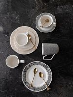 Inspired by classic Grecian design, this AH Apollo Gold Rimmed Mug in Black brings a glamorous feel to after-dinner coffee and early-morning tea. Made from New Bone China, it features refined handpainted accents with a delicate gold rim and gold trim handle that perfectly complement the Greek key linear pattern.