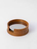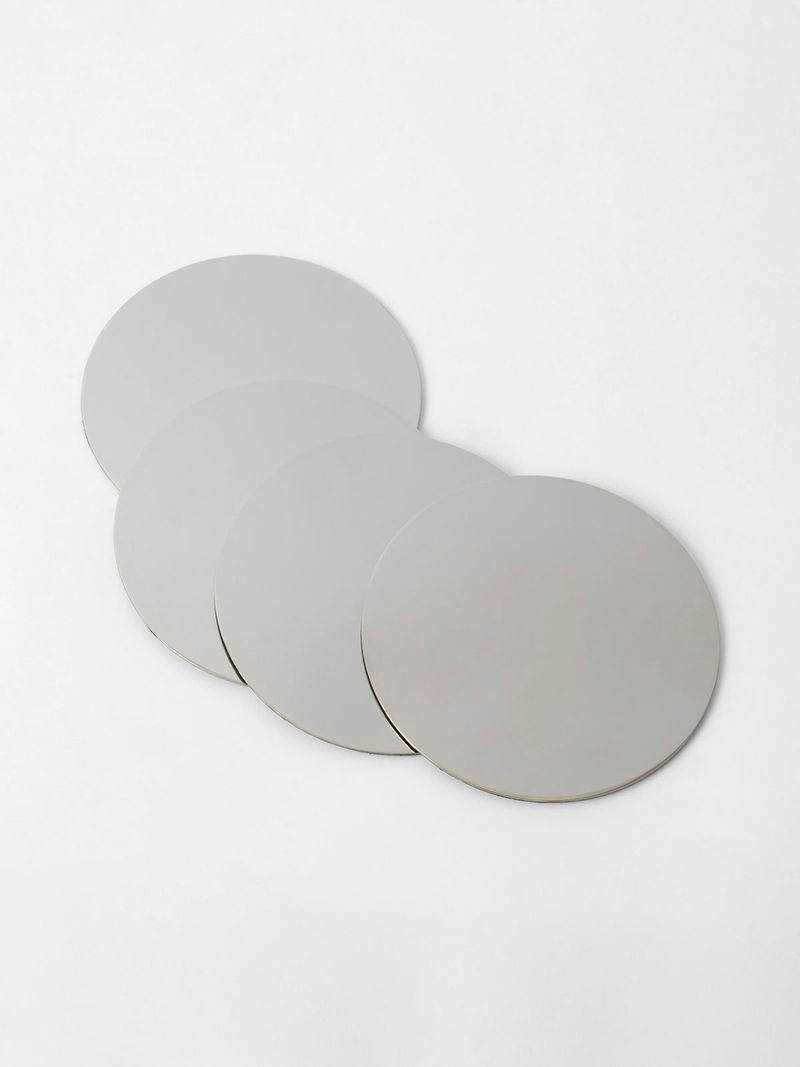 Protect your surfaces but make it chic with the AH Metal Coaster Set with Wooden Stand. Made from mirror-finished stainless steel, this set of 4 coasters brings a contemporary feel to your table. This set includes a wooden stand to store them when not in use.