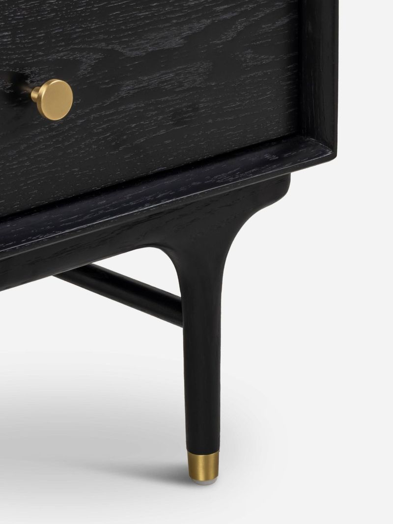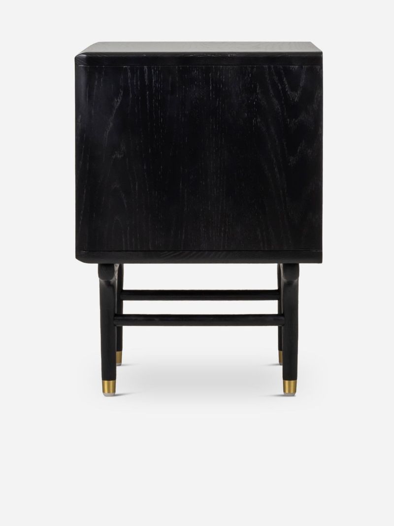 Introducing the Alicia Pedestal in dark wood and gold trims This handy piece adds a touch of sophistication to any bedroom.Perfect for showcasing your favorite items.