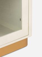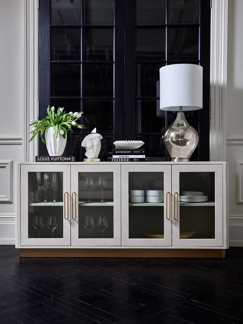 The Allegra Shagreen Sideboard is a stylish piece features luxurious faux shagreen and antique brass powder-coated handles. With soft close doors it offers ample storage. Make a statement with this chic sideboard!