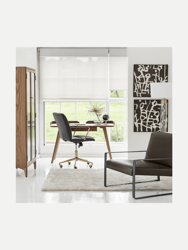 The Allen Office Desk offers sleek elegance and functional design, making it the perfect addition to your study or home office. Its angled, tapered legs and rich walnut finish create a timeless mid-century modern aesthetic. A discreet centre drawer provides convenient storage, making this desk as functional as it is sophisticated.