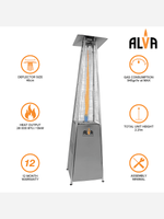 Warm your outdoor spaces in style with the Alva Quartz Glass Tube Patio Gas Heater. The mesmerising flame tube adds ambience to any outdoor area.
