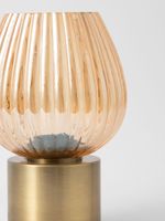 Bring soft, elegant lighting to your bedroom or living space with the Amber Glass Pod Shade Table Lamp. The fluted amber glass shade paired with the brushed brass base has a luxe Art Deco-inspired feel with a contemporary update. The compact size makes it ideal for smaller side tables and areas that need gentle ambient light.