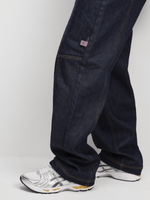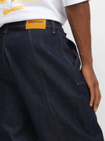 Introducing Anatomy's Blue Dark Denim Utility Jeans. Made with comfortable cotton fabric, these full-length jeans feature a baggy style perfect for everyday wear. Designed with practical utility in mind, they are a versatile addition to any wardrobe. Model is 1.85m and is wearing size 34 for reference. Built to last and easy to style, these jeans are a must-have for any casual look.