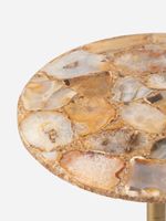 The Angie Adjustable Agate & Brass Side Table is a striking statement piece. The natural stone top features beautiful real agate stone in natural shades, creating a unique piece for your home. The adjustable brass-plated base lets you customise the height to suit your needs.