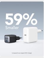Ultra-compact USB-C charger for phones, tablets and MacBook Air, with two pin plug