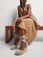 Our Ankle Tie High Wedges are the ultimate shoe for summer. Classic and versatile, they give added height and glam to your smart and casual looks. Wear them with everything from mini shift dresses, to flowy wide leg pants and maxi dresses.