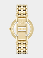 Elevate your wrist with the rich contrast of emerald green and polished gold. This round bracelet watch features Roman numeral markers and a crystal-accented bezel, blending classic charm with just the right amount of sparkle.