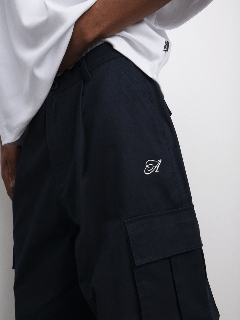 Introducing the Archive cargo baggy pants in navy, perfect for a relaxed and casual look. Made from soft cotton, these pants feature spacious cargo pockets for added convenience. Enjoy a comfortable fit and versatile style with these pants that are perfect for everyday wear. Supplier style is (ARC-25Q3-124).