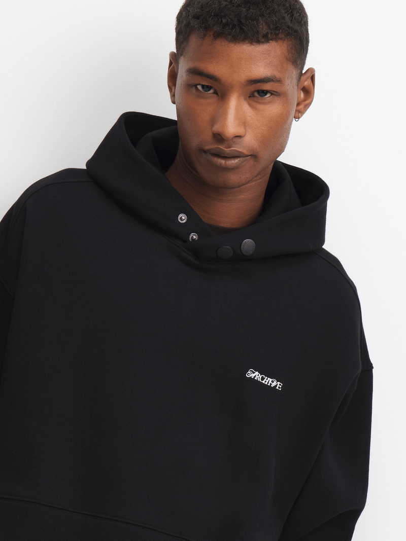 Introducing the Archive Core Black Hoodie from ARCHIVE. Made from comfortable cotton, this hoodie features a relaxed fit with a hooded neckline and long sleeves. Perfect for layering or lounging, this hoodie is a versatile addition to your wardrobe. Supplier Code_ARC-25Q1-008.