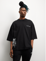 Unleash your style with this oversized black T-shirt featuring photoreal flower print. Made from comfy cotton, this tee is perfect for everyday wear. Express yourself with this unique piece that's easy to pair with any outfit. Supplier style is (ARC-25Q2-123).