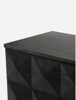 The Argyle 6 Drawer Chest is a black Geometric Luxe Sideboard – a statement piece designed for those who appreciate refined artistry and modern elegance. This sideboard features a striking three-dimensional geometric façade in a deep, rich black finish, exuding understated luxury.