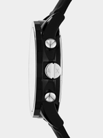 Bold yet refined, this sleek Armani Exchange chronograph is a showstopper. The black silicone strap lends sporty versatility, while the 44mm round mineral crystal case exudes modern style. Black dial, quartz movement. Water resistant to 30 meters. Punctuated by a touch of signature minimalism.