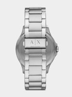 Elevate your style with this stainless steel watch from Armani Exchange. The bold 46mm case frames a modern black dial. Powered by precision quartz movement, this three-hand design with date window balances form and function. The sleek stainless steel bracelet secures with a fold-over clasp for an impeccable fit. Effortlessly polished yet subtly edgy.