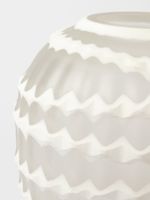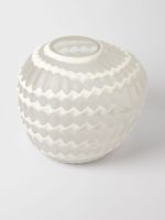 Our Artisanal Honeycomb Glass Vase has a sculptural feel that brings interest to coffee a table or shelf. A combination of white and opaque glass with a richly textured surface makes a striking decorative piece that can also be used as a functional vase for displaying flowers.