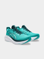 The GEL-NIMBUS® 27 shoe's soft cushioning properties help you feel like you're landing on clouds. This design is revamped to help create a softer and smoother running experience A soft engineered jacquard mesh upper comfortably wraps your foot while supplying advanced ventilation. Additionally, the knit tongue and collar help provide a soft and supportive feel.
