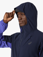 The METARUN WATERPROOF jacket is one of the most advanced jackets in the ASICS running collection. It's functional when you're running the elements and can easily removed and packed into the chest pocket during your run.