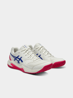 Presenting the Gel-Dedicate 8 women's tennis shoe, a perfect blend of stability and flexibility designed to keep your focus centered throughout the match. Crafted with a synthetic leather upper, this shoe prioritizes support, ensuring your feet remain locked-in even during swift direction changes and when relentlessly pursuing challenging shots.