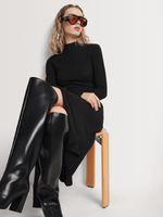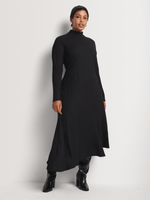 Our Asymmetrical Hem Bubble Knit Column Dress is a winter staple that keeps your look comfortable yet chic. Wear it with ankle boots and add a studded waistbelt and hobo slouch bag to complete the look.