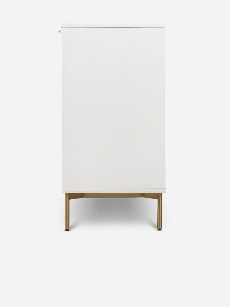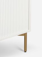 The Aura sideboard with ample storage, brings an elegant sophistication to your living space with its modern style. Fluted detailing and metallic hardware add a luxe feel to each piece.