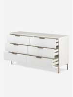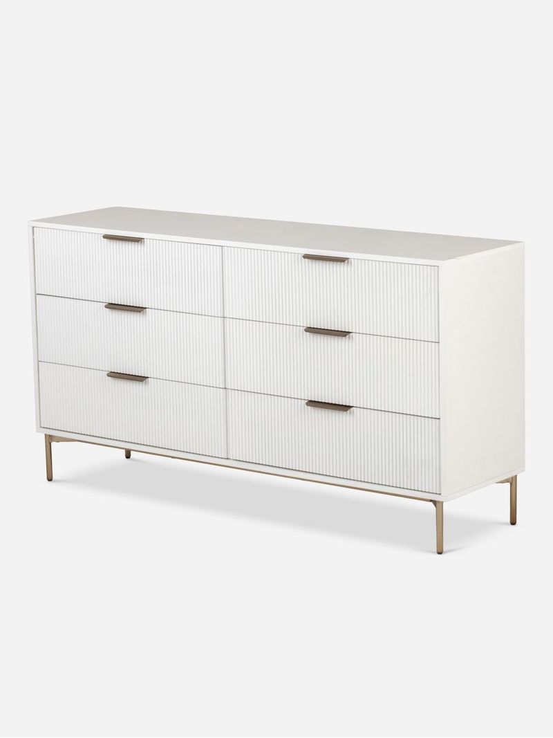 Aura 6 Drawer Chest has fluted detailing and metallic hardware adding a luxe feel to each piece.
