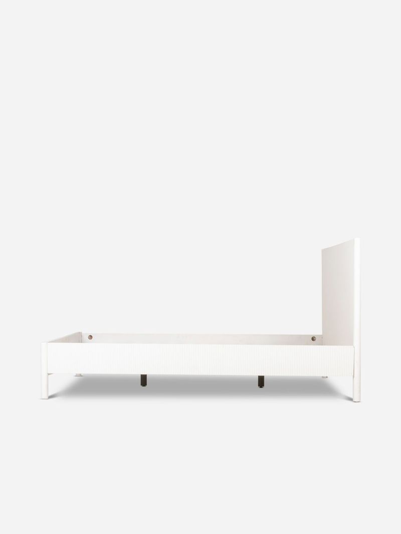 Create a serene retreat with the minimalist elegance of the Aura Bed. A satin lacquered finish and clean lines create a modern silhouette. This bed features a high headboard and low-profile frame, with a subtle fluting detail that adds texture and depth.