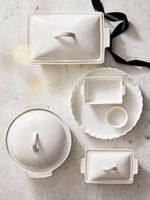 The Aurora range of classic porcelain ovenware can be taken straight from the oven to the table to serve your guests. The Aurora Rectangle Lidded Porcelain Casserole is perfect for baked sides or mains. The included lid is great for covering before serving or for dishes that require covering during cooking. Made from high-quality porcelain that is both durable and non-porous, it is suitable for oven and microwave use, and is dishwasher safe, making cleanup a breeze.