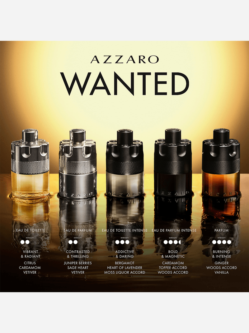 Azzaro Wanted Eau de Parfum is an invitation to feel the adrenaline at every moment. A Woody Aromatic Spicy fragrance, both energizing and addictive, for men who want to play all in.
