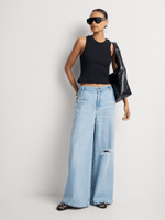 Comfortable and stylish, our FF Denim Back Elastic Baggy Jeans are made from stretch denim with an on-trend wide leg. The back waist elastic offers a comfortable and flexible fit. Wear them with graphic tees, vests or knit tops.
