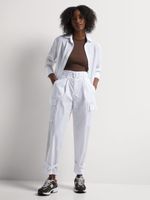 Update your look with these on-trend Barrel Leg Paper Bag Waist Utility Pants. Wear them with court heels and a fitted mesh top over a bralette for a bold look, or dress them down with classic sneakers and a polo neck.