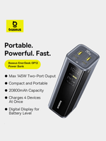 This power bank has an output of 145W between 2 devices, with up to 100W going to a single device, for fast charging iPhones, Samsung phones and steam deck consoles.