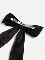 Make a bold yet elegant statement with the Beauty Box Satin Edit Long Bow Clip in Black - a refined hair accessory designed to elevate any look with timeless charm and silky sophistication.