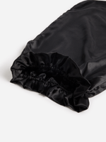 Place the bonnet over dry, styled, or moisturized hair before bed. Ensure all hair is tucked in and the bonnet fits snugly around your head to stay in place overnight.