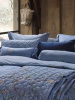 Designed by Amsterdam-based PIP Studio, whose philosophy is 'a world full of hidden designs and details,' this charming Bedding House Bustani Duvet Cover Set features intricate floral patterns combining graceful branches, fantasy flowers, berries, and leaves with subtle geometric side panels and a piped finish for an extra luxurious look. With a unique print on both sides and a pretty tie closure, the cushions and duvet can be used on both sides.