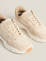 These sneakers feature a streamlined low-top silhouette with a lace-up closure for a clean finish. Crafted for everyday comfort, they include a cushioned sole and subtle detailing. Finished in beige, they offer a versatile look that pairs effortlessly with casual outfits.