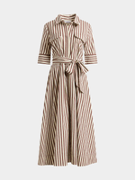 Classic and chic, our Belted Stripe Shirt Dress is a versatile piece in your wardrobe. Wear it casually with sneakers or dress it up with ankle boots. Add classic hoop earrings and a shoulder bag.