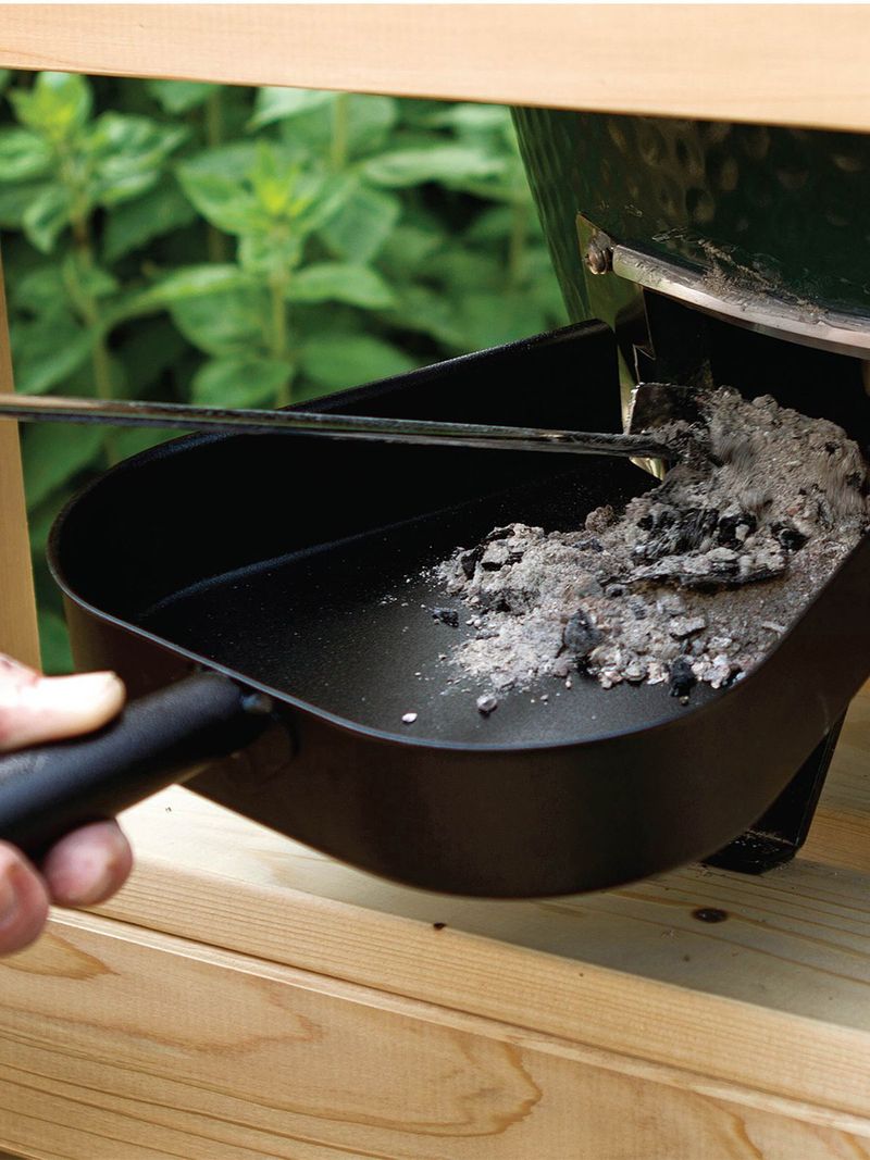 The Ash Tool is the perfect utensil for removing the small amount of ash that collects at the bottom of the EGG. Using the bar at the end of the Ash Tool, you simply pull the ash out of the Stainless Steel Draft Door.