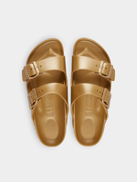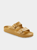 The BIRKENSTOCK Arizona is a genuine classic that has been delighting both men and women with its timeless design for decades. Modeled on the cork original, this sandal is made from ultra lightweight and highly flexible EVA. This high-quality, odor-neutral synthetic material which has been tested for harmful substances is shock-absorbent, waterproof, and skin-friendly. It is therefore perfect for wearing on the beach, in the garden, or in wellness and spa areas.