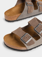 The BIRKENSTOCK Arizona is a genuine classic that has been delighting both men and women for decades. This simple sandal with two straps stands for timeless design and has long held cult status thanks to its comfort factor. The upper is made from especially soft suede which hugs the foot like a second skin. The two straps are made from extra thick, oiled nubuck leather with an open-selvage finish.(Supplier Style:1029159_ARC)