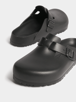 The BIRKENSTOCK Boston is a veritable classic that can easily be worn all year round. The Boston has a legendary status thanks to its sophisticated, individual design. Modeled on the cork sandal, it is made from the ultra lightweight and highly flexible synthetic material EVA. The high-quality, odor-neutral EVA has been tested for harmful substances and combines numerous positive attributes: it is very light, highly elastic, shock-absorbent, waterproof, and skin-friendly.(Supplier Style:1002314/1)