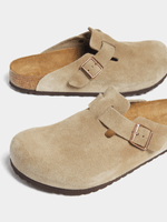 This exceptionally sophisticated yet highly casual version of the Boston clog, a classic BIRKENSTOCK model, comes with a shaft in soft suede.The robust and extremely lightweight EVA sole is very flexible, too. It facilitates a rolling motion that is good for feet and body.(Supplier Style:60461/002)