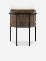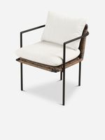The Emrik Bjorn Dining Chair brings modern style and plush comfort to your seating. The slim metal frame is elevated by a poly resin wicker seat and subtly curved backrest, then finished with two fabric cushions.