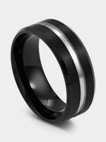 Expertly crafted in Black Plated Stainless Steel, this stylish ring features a silver toned centre groove and bevelled edges.