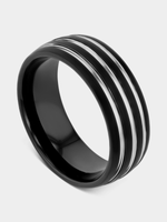 Expertly crafted in Black Plated Tungsten, this stylish ring features horizontal stripe design. A luxurious, heavyweight and scratch resistant metal that is durable and strong.
