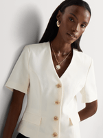 Elegant and on-trend, our Collarless Short Sleeve Blazer brings a polished look to your fit. Wear it with the matching bottom for a stylish co-ord set.