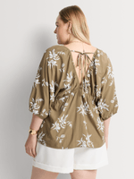 Our Embroidered Puff Print Blouse can be worn on its own with jeans or shorts, or as a co-ord set with the matching bottoms. Made from a lightweight fabric, its ideal for warm summer days and nights.