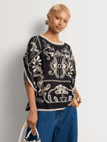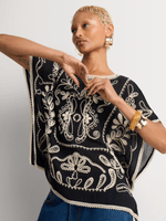 Add pattern and texture to your look with our Embroidered Blouse. Made from a lightweight and breathable cotton viscose blend, it features a striking contrast embroidery detail. Wear it with wide-leg pants or shorts.